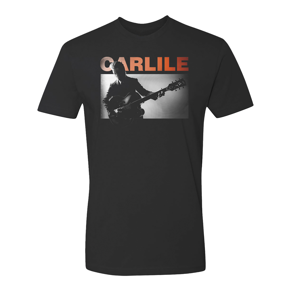 Guitar shadow photo featured on the front of a unisex classic fit black tee.